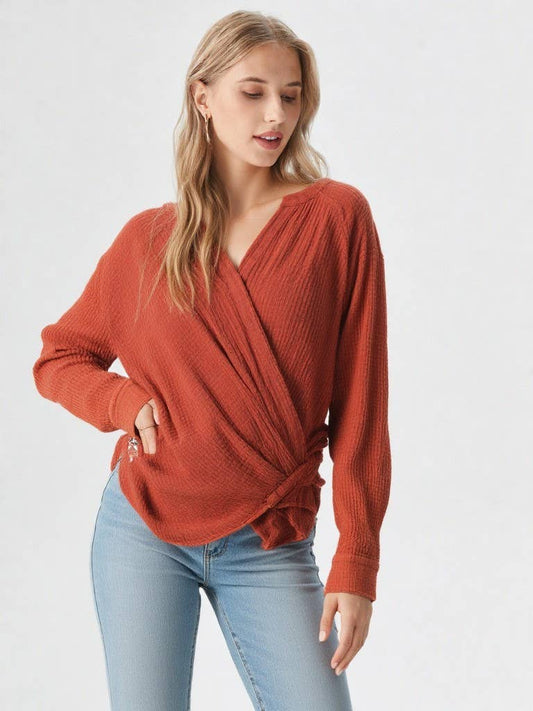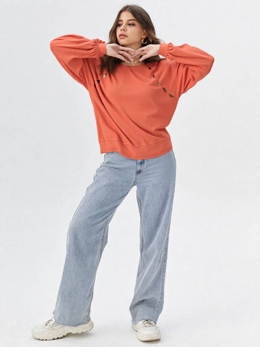 ROUND NECK BUBBLE LONG SLEEVE TEXTURED KNIT TOP